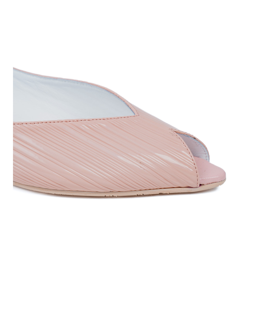 Nude-coloured leather sandals. Designed with an elegant pointed toe, these ballet flats are characterised by their comfort and the elegance of their peep-toe silhouette. They are adjustable thanks to the elastic band at the back.