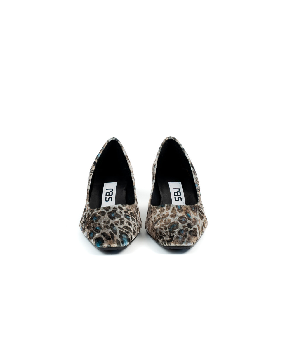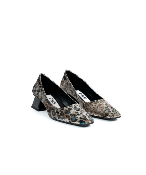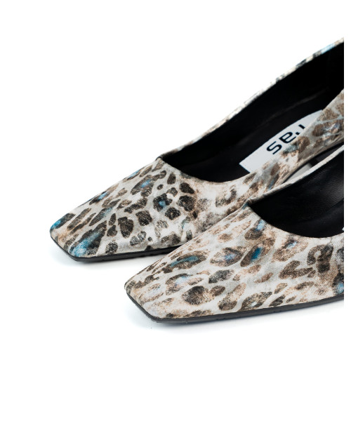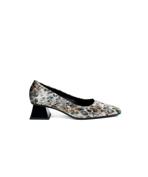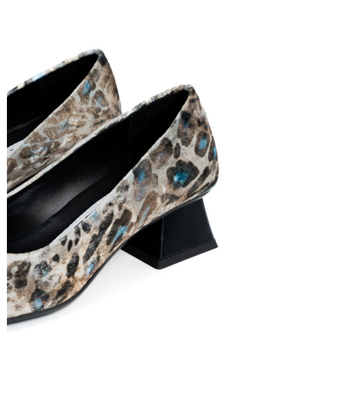 Ballet flats made from fabric with a lynx print. Designed with an elegant round toe, they are characterised by their simplicity and elegance. This model is easy to put on and comfortable to wear, with a 4 cm mid-height heel.