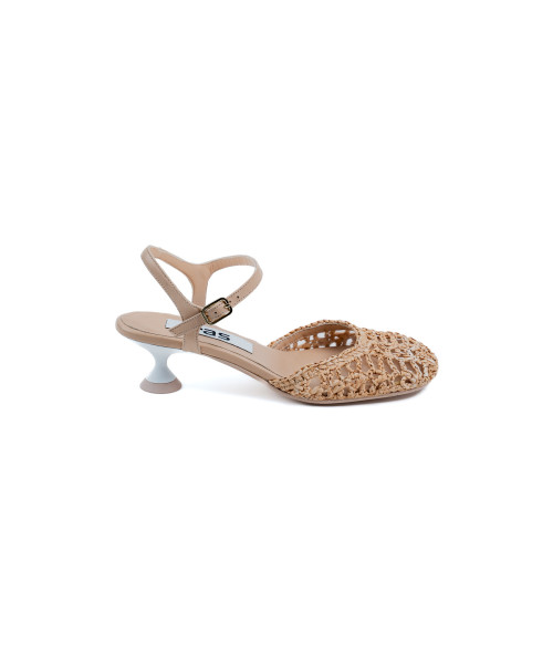Tan leather ballet flats with a square toe. Designed with a square toe, these ballet flats feature different mesh straps that give them a very original touch while following the latest trends. In addition, these shoes fit perfectly around the ankle thanks to their buckle fastening.