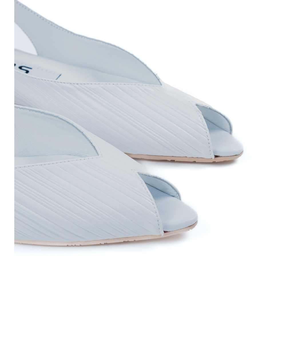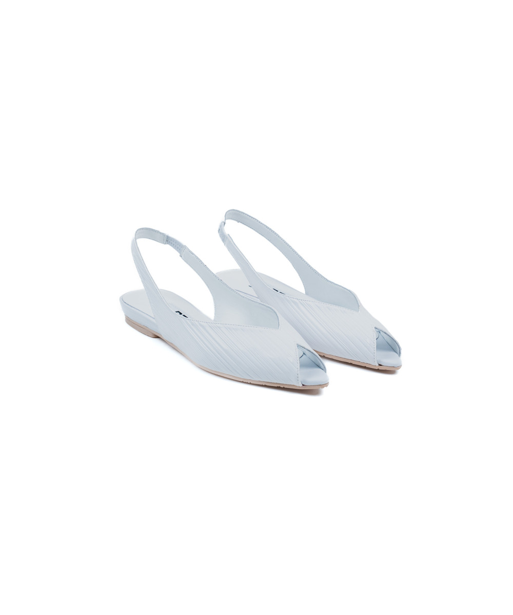 White leather sandals. Designed with an elegant pointed toe, these ballet flats are characterised by their comfort and the elegance of their peep-toe silhouette. They are adjustable thanks to the elastic band at the back.