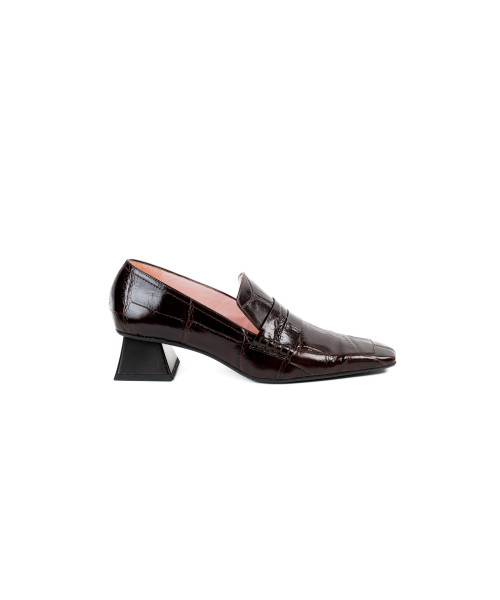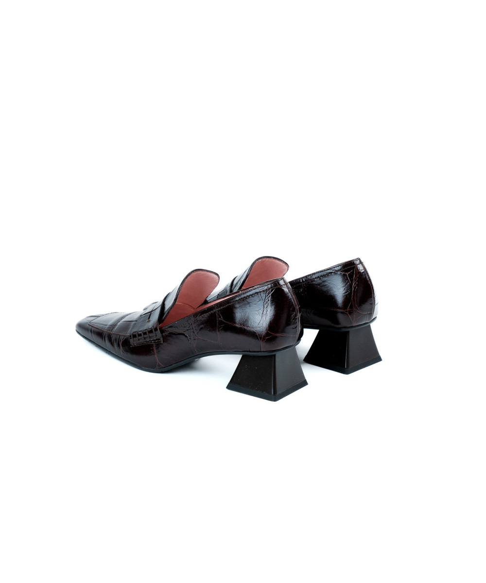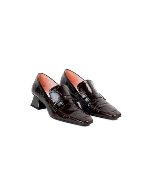 Mocasín fabricado en piel grabada. Diseñado en una elegante punta semi redonda, se caracteriza por su forma clásica, elegante y atemporal. Este modelo se ajusta fácilmente para poder vestirlos y llevarlos cómodamente junto con el tacón medio de 4 cm.